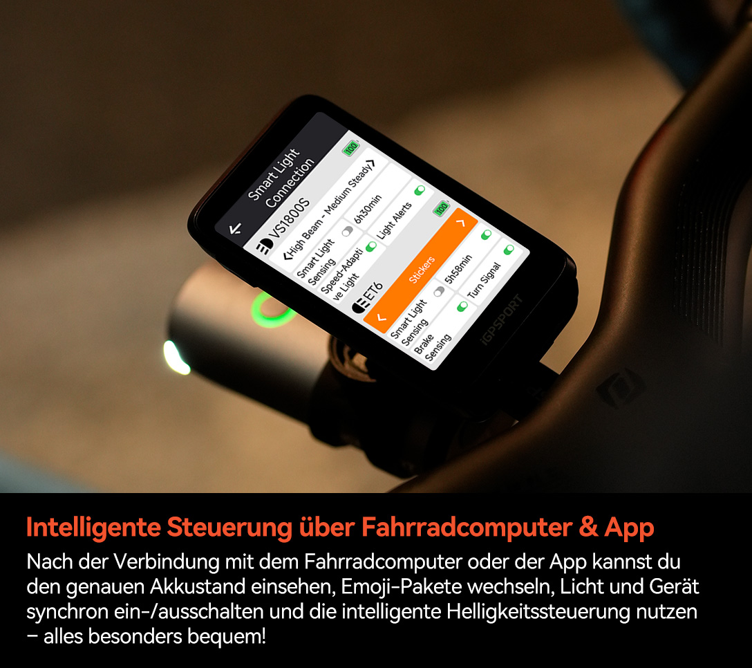 *Die Emoji-Kombinationen wechseln automatisch je nach Geschwindigkeit, Leistung, Herzfrequenz, Trittfrequenz, Fahrstrecke und Fahrzeit. Während der Fahrt ist eine Verbindung mit einem iGPSPORT-Fahrradcomputer erforderlich.