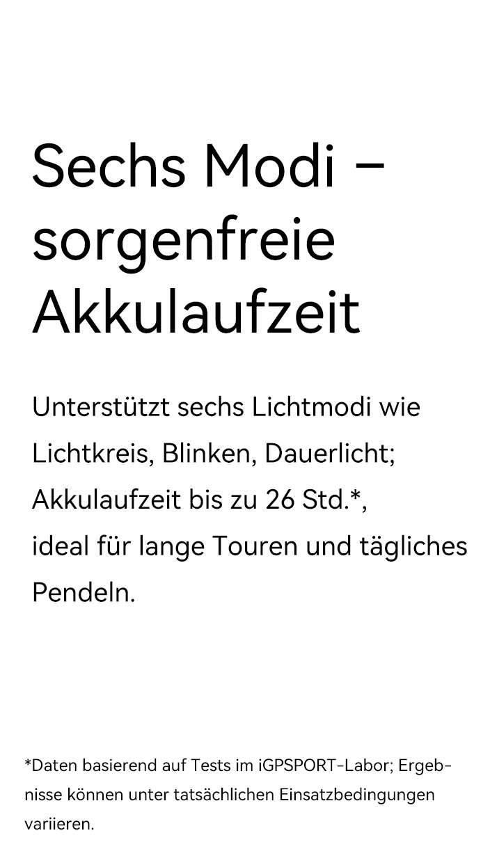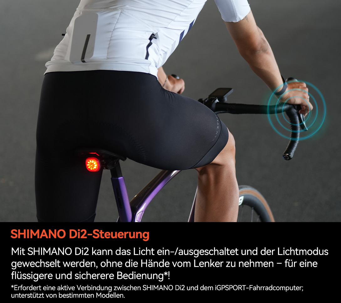 * Ermöglicht die individuelle Einstellung der Bremslichthelligkeit über die iGPSPORT-App.