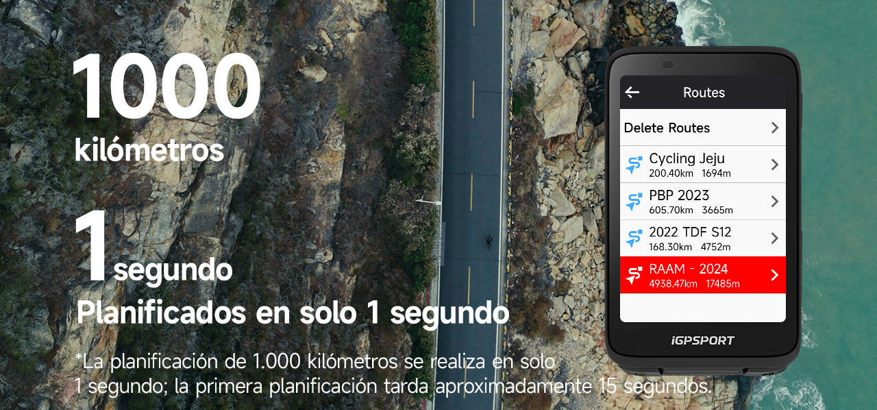 ¹ Conéctate a la app iGPSPORT, ingresa tu destino y activa la Navegación con un Solo Toque.