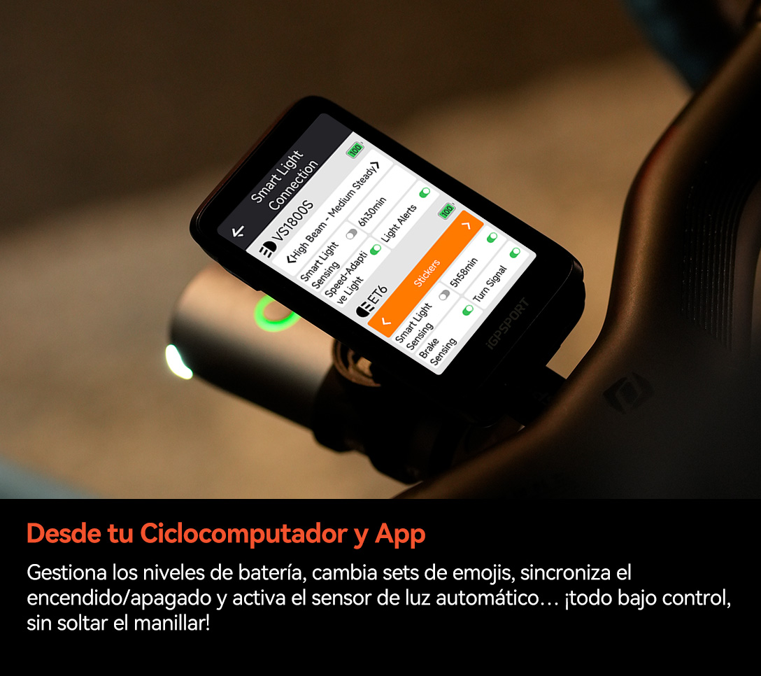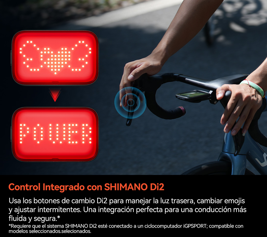 ¡Exprésate con estilo al pedalear! Tu luz trasera se convierte en transmisor de emojis, compartiendo tu estado de ánimo ciclista en tiempo real.