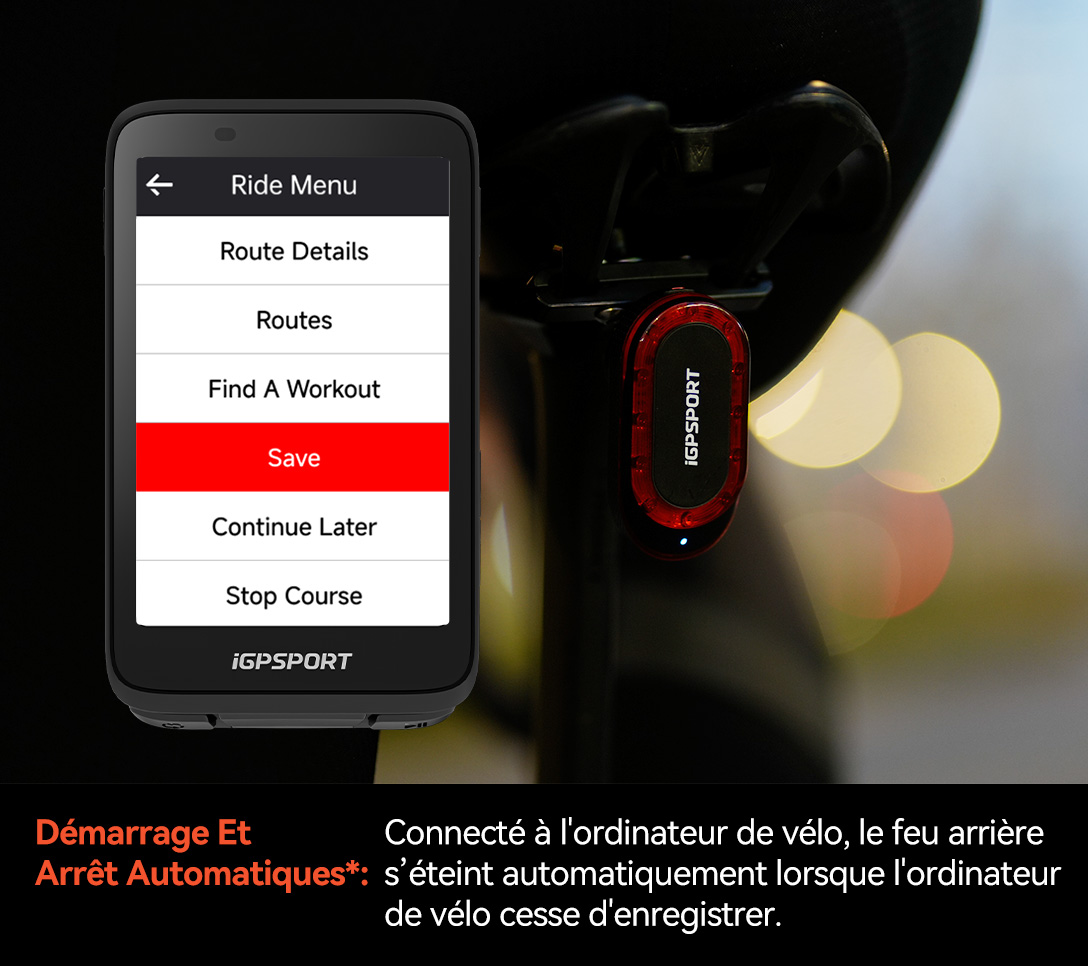 *Pour utiliser cette fonction, le feu arrière doit être connecté à l'ordinateur de vélo.