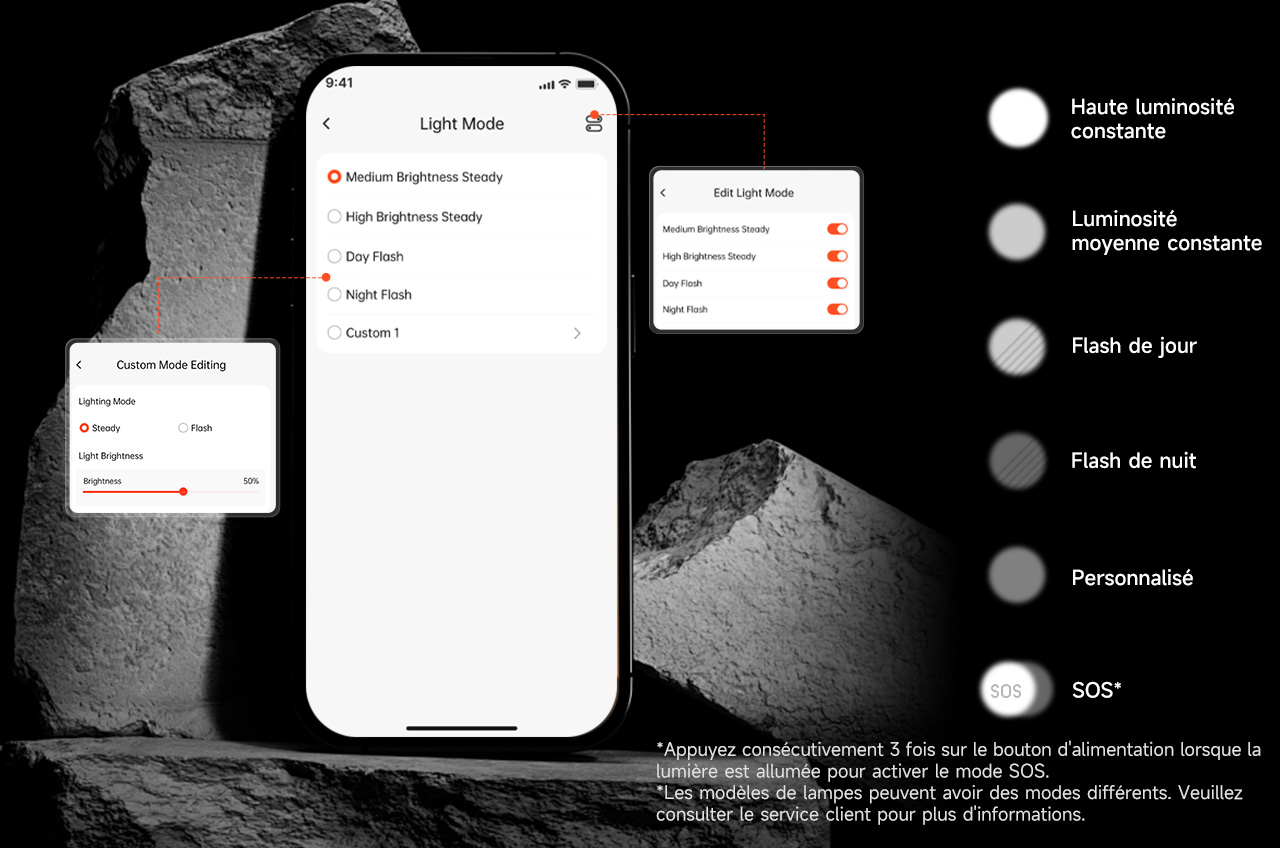 Équipée d'une batterie de puissance de haute qualité et d'une technologie de gestion intelligente de la batterie développée en interne, cette lampe offre une autonomie ultra-longue pour des trajets ininterrompus.