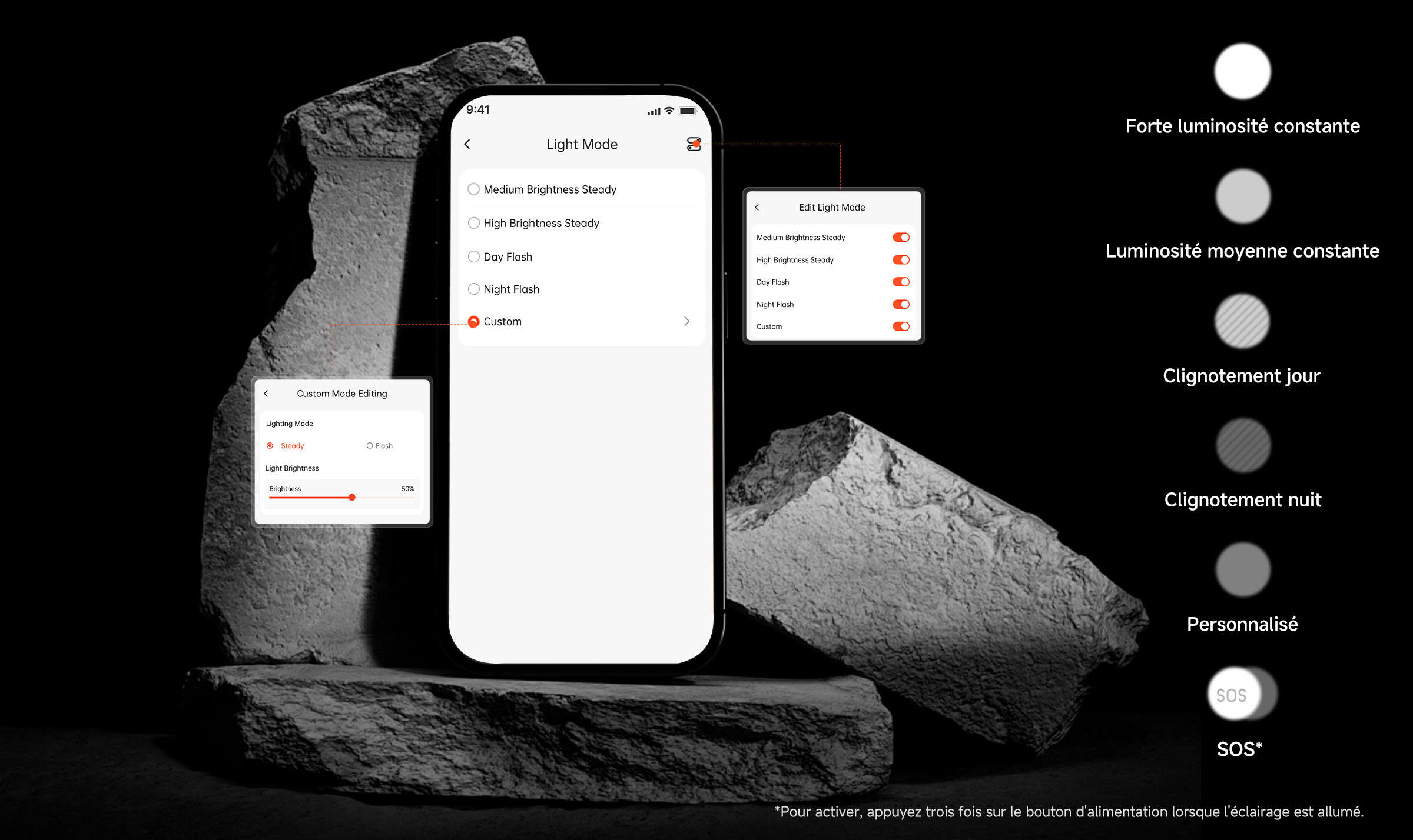 L'éclairage passe automatiquement en mode veille lorsque vous êtes garé ou en attente au feu rouge, et se réveille instantanément lorsqu’un mouvement est détecté ou qu’un bouton est pressé, offrant ainsi une plus longue autonomie.