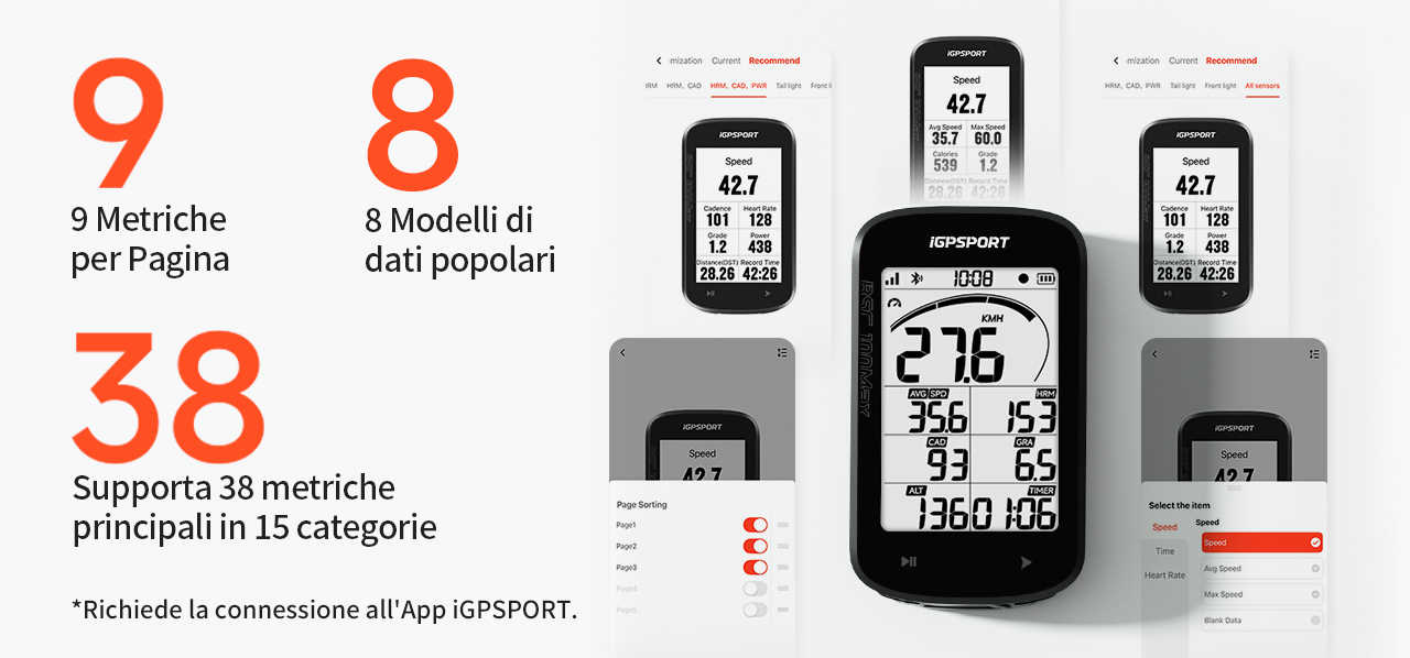 Il layout progettato scientificamente presenta le informazioni in modo intuitivo. Le metriche comuni (velocità, frequenza cardiaca, potenza, cadenza, pendenza e zone di frequenza cardiaca) sono tutte visibili su un unico schermo, con i dati chiave personalizzabili tramite modelli.*