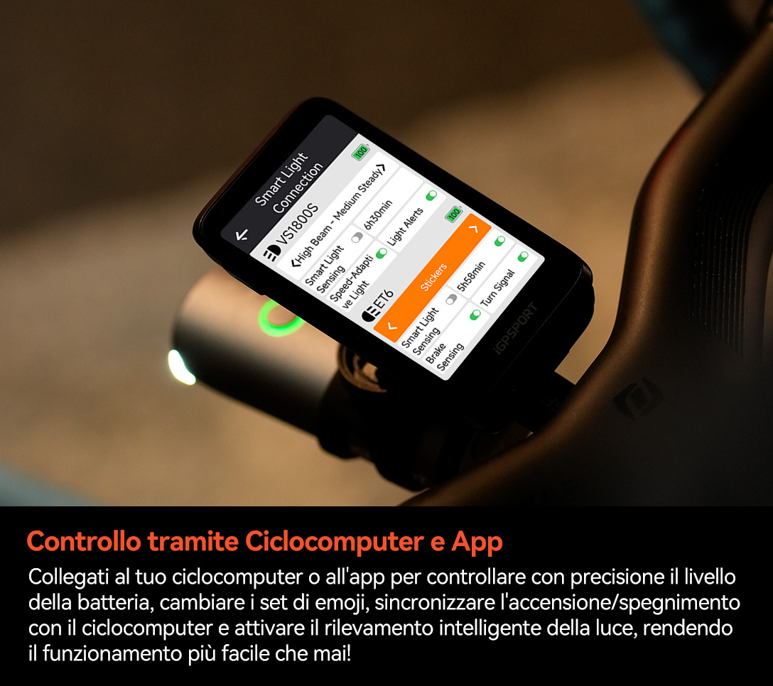 Le emoji cambiano automaticamente in base alla velocità, alla potenza, alla frequenza cardiaca, alla cadenza, alla distanza o agli intervalli di tempo. Deve essere collegato a un ciclocomputer iGPSPORT durante la guida.