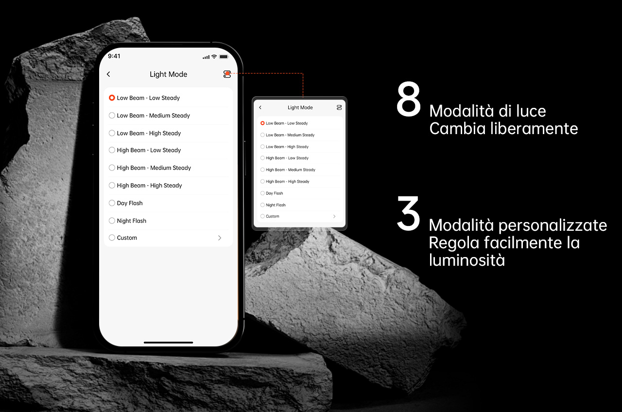 Controllo Intelligente della Temperatura: Il sensore di temperatura integrato mantiene la temperatura al di sotto dei 55°C per evitare il surriscaldamento, garantendo una luminosità stabile e proteggendo l'autonomia della batteria.