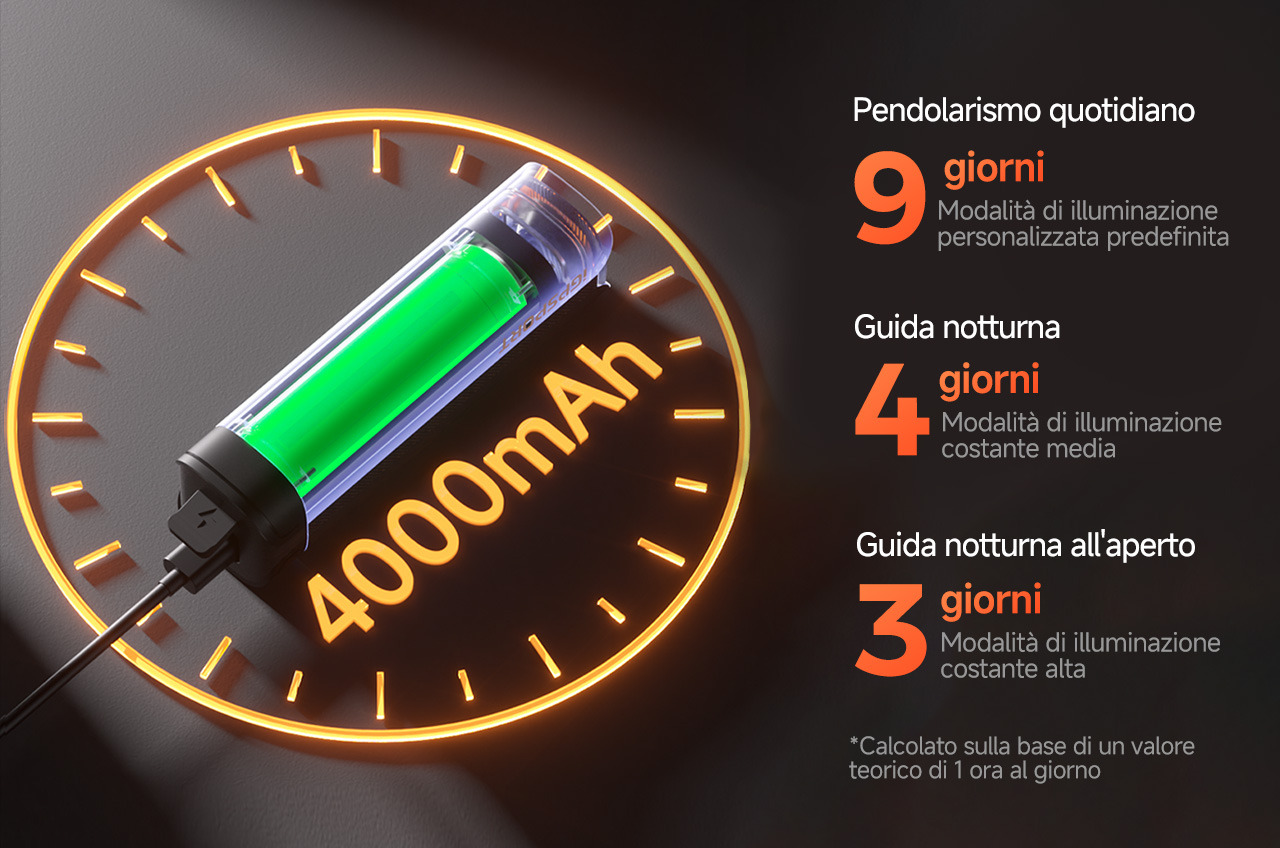 Grazie all'elemento di rilevamento della temperatura incorporato, la temperatura viene controllata fino a 50°C, evitando il surriscaldamento, garantendo una luminosità stabile e proteggendo la vitalità della batteria.