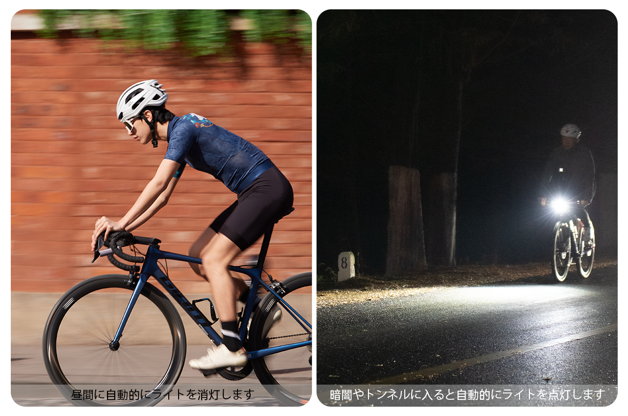 暗闇やトンネルに入ると自動的にライトを点灯します。