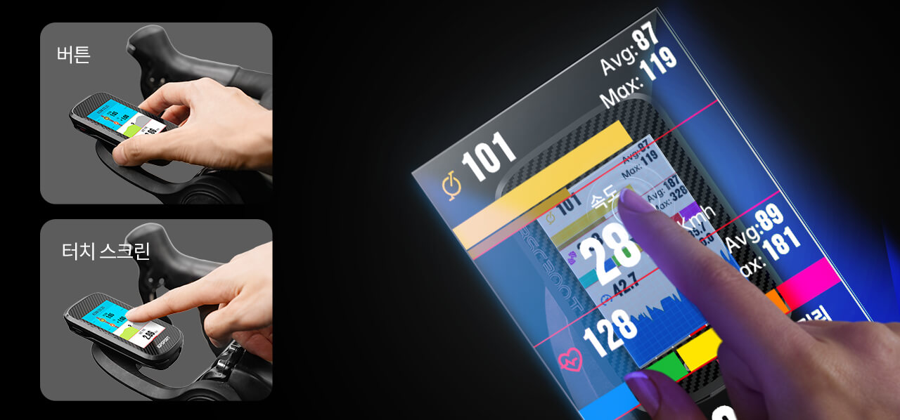 2.4인치 컬러 터치 스크린, 한 번의 터치로 바로 출발할 수 있습니다. 버튼과 터치스크린을 함께 사용하여 비 오는 날에도 자유롭게 라이딩할 수 있습니다.