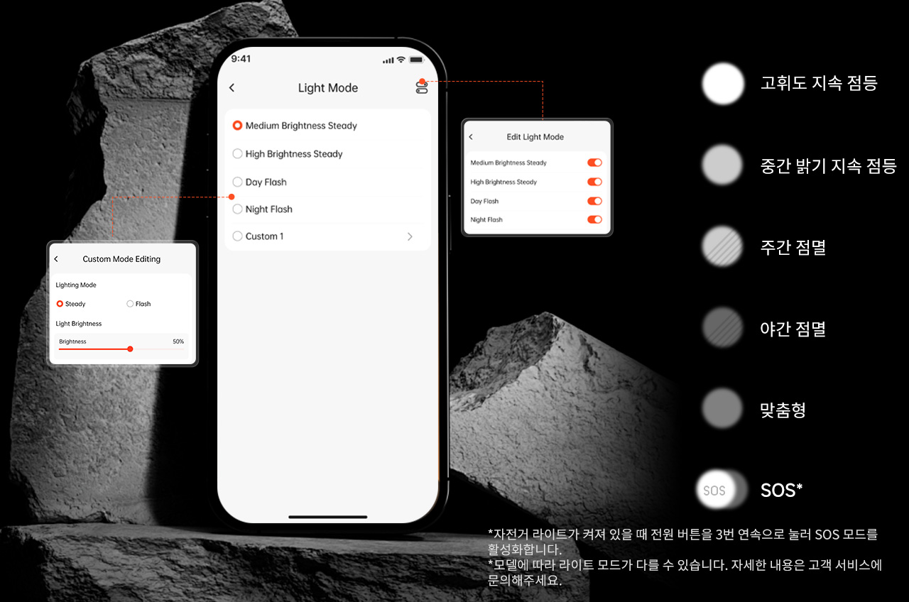 iGPSPORT APP을 통해 선호하는 밝기와 라이트 모드(여러 가지 라이트 모드가 있으며 일부 모드는 비활성화 가능)를 설정하여, 모든 라이딩을 자신의 필요에 맞게 맞춤화할 수 있습니다.
