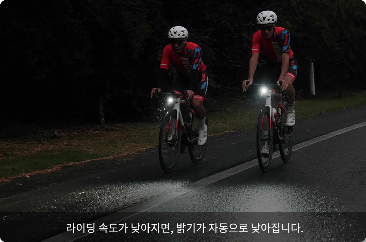 라이딩 속도가 낮아지면, 밝기가 자동으로 낮아집니다.