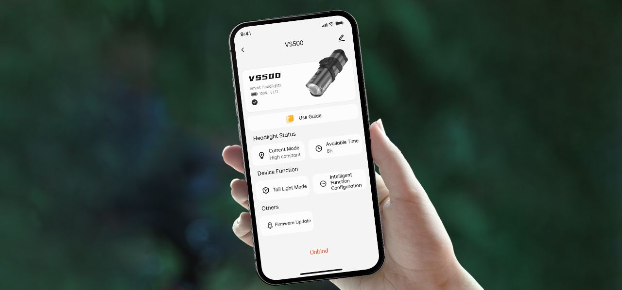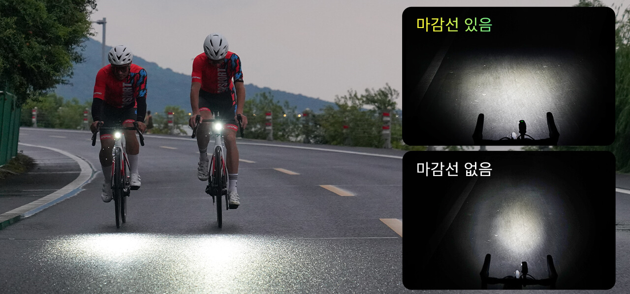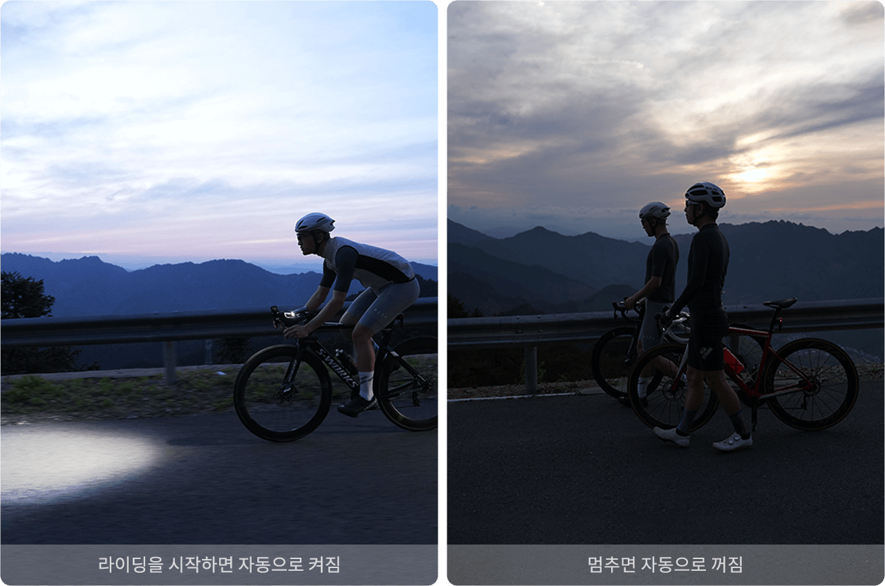 자전거 라이트는 자전거 컴퓨터와 연동되어 라이딩이 끝날 때 자동으로 꺼지도록 설정할 수 있어, 수동 조작이 필요 없습니다.
