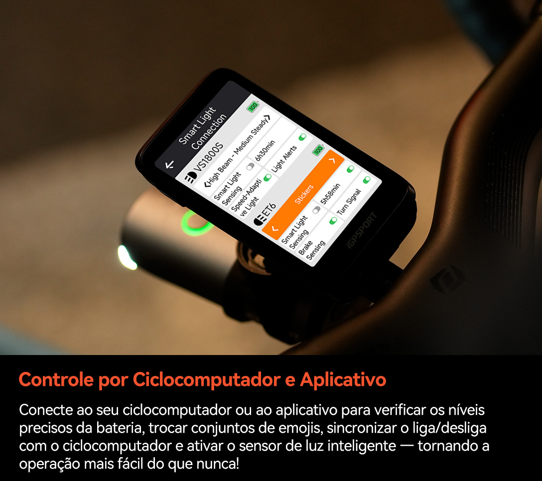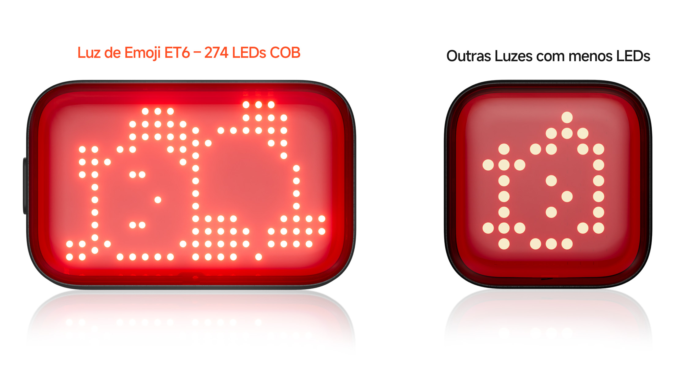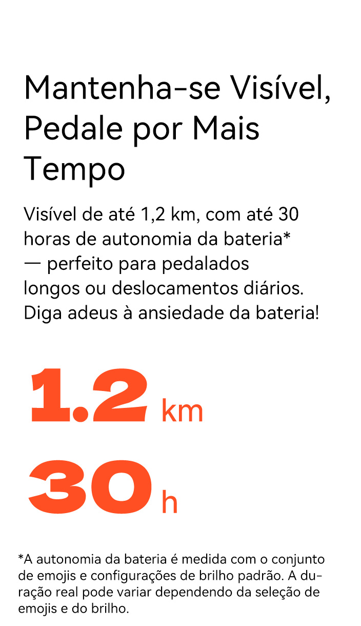 Expresse seu passeio com estilo! Sua lanterna traseira se torna seu transmissor de emojis, compartilhando seu humor de ciclismo em tempo real!