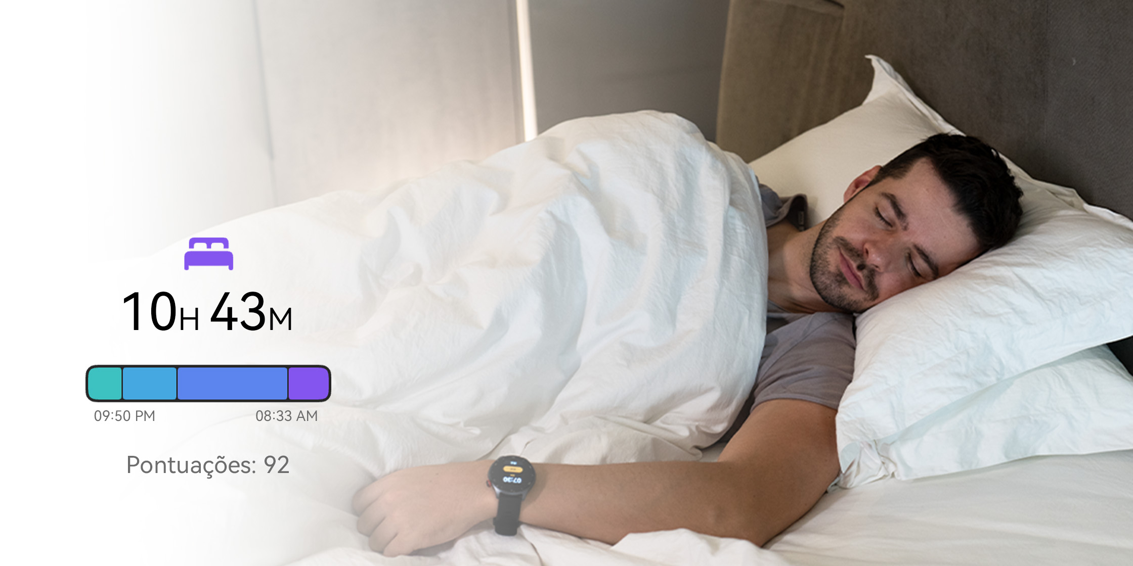 Fornece monitorização e acompanhamentio durante todo o dia da frequência cardíaca, oxigénio no sangue, sono, stress e outros dados de saúde. Proteção multidirecional da sua saúde física e mental.