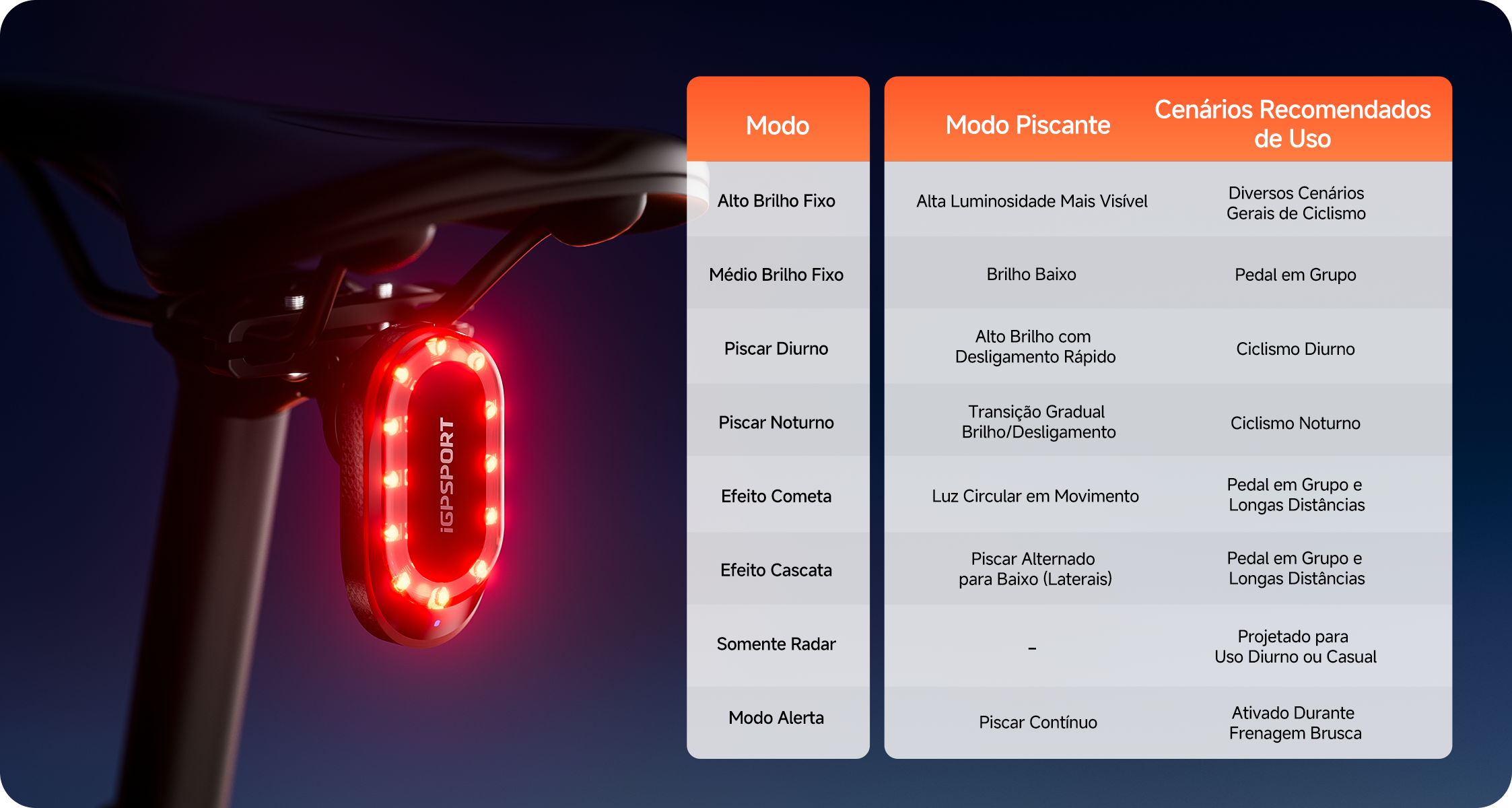 *Para usar essa função, a luz traseira deve estar conectada ao ciclocomputador.