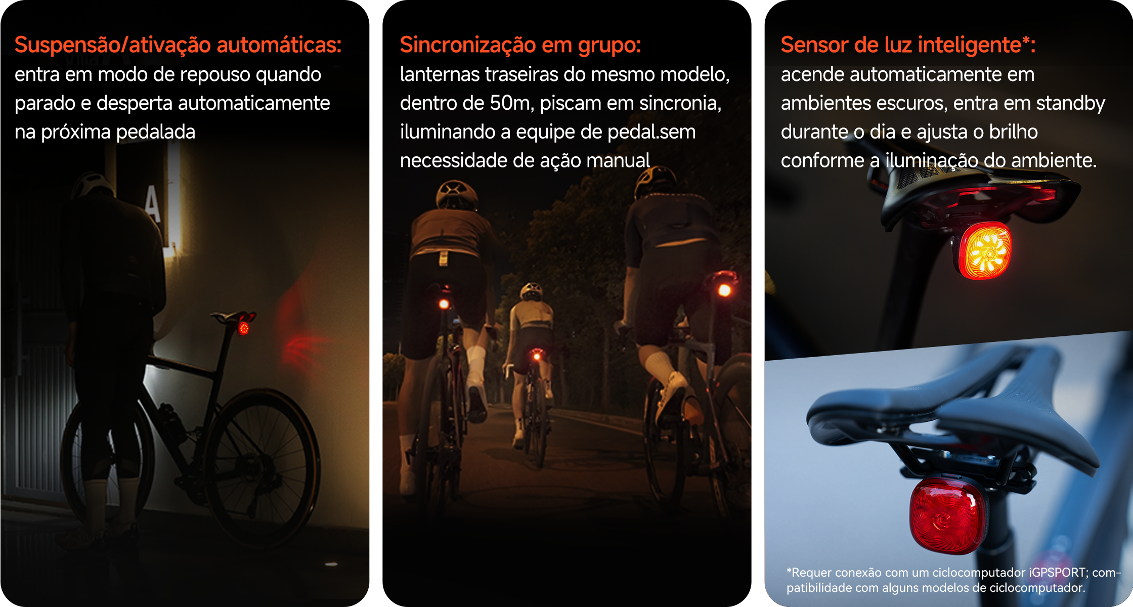 *É possível personalizar o brilho da luz de freio pelo App iGPSPORT