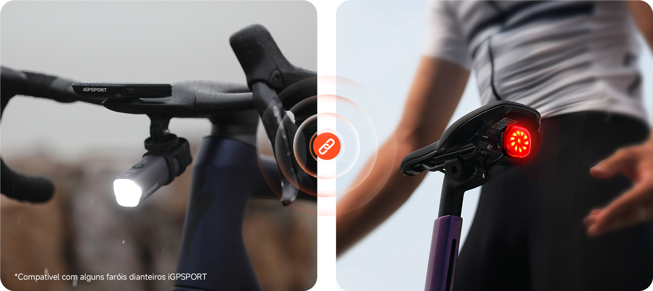 O farol dianteiro e traseira conectam-se automaticamente quando próximos*, suportando ligar/desligar sincronizado com um só clique.