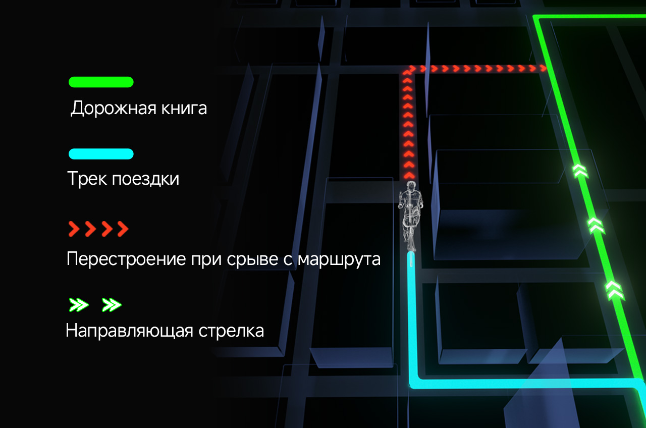 [Навигация в одно нажатие¹] Быстрое прибытие в пункт назначения: приложение планирует маршрут за 3 секунды и передаёт его на спидометр для навигации одним касанием.