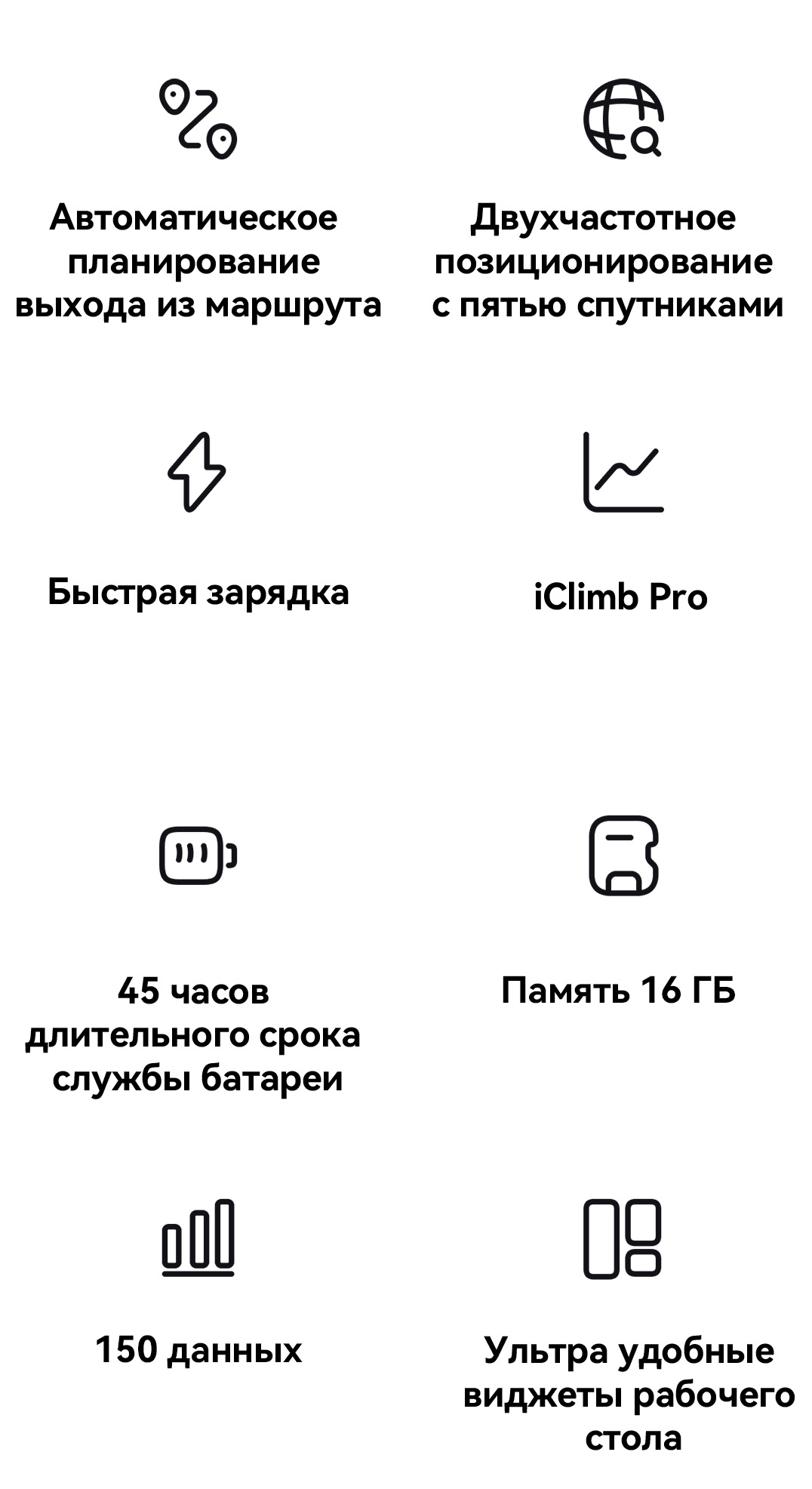 Комбинация данных и диаграмм, динамическое отображение, более графическая цветовая дифференциация различных трудностей скалолазания. Градиент, уклон, длина набора высоты, расстояние до вершины и оставшееся расстояние подъема можно увидеть с первого взгляда.